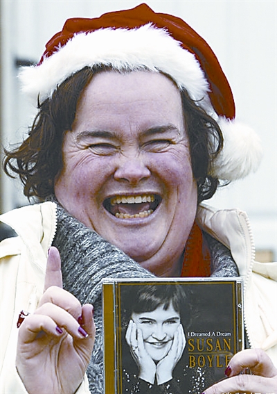 當?shù)貢r間12月1日,蘇珊大媽在自家門前宣傳新CD,并且為粉絲簽名。她戴著紅色圣誕帽笑容可掬咧大嘴憨傻雷人,蘇珊大媽變“圣誕大嬸”造型滑稽引人笑。
