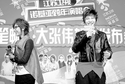 周筆暢、大張偉加盟江蘇衛(wèi)視跨年演唱會新聞發(fā)布會昨日在京舉行。雖說大張偉年齡比周筆暢大,出道時間也比周筆暢長,但面對眼前這位“新人”,大張偉自稱“筆迷”,不僅極力討好,和周筆暢說起話來還一口一個“您”。