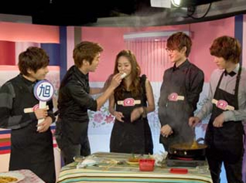 中新網(wǎng)12月31日電 近日,Super Junior-M再度上臺灣娛樂節(jié)目,搶著做美食給甜心美女主持侯佩岑。節(jié)目中,由厲旭和韓庚分成兩組進行PK,但被分在韓庚組的東海卻包了個巨大水餃,還在里頭狂加辣,嚇得侯佩岑直說,“媽媽們千萬別讓他進廚房啊。”