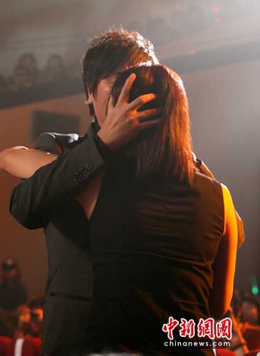 中新網(wǎng)4月12日電 4月11日晚,蒙牛酸酸乳音樂風(fēng)云榜十年盛典再回深圳盤點(diǎn)華語樂壇新世紀(jì)十年。本屆頒獎(jiǎng)星光熠熠,那英、陳奕迅、莫文蔚等華語樂壇大腕紛紛登場。本屆盛典評委會主席那英在活動接近尾聲時(shí)榮獲“十年最具影響力音樂人物”大獎(jiǎng),在現(xiàn)場言辭激動甚至動情落淚,并和孫楠互相親吻。
