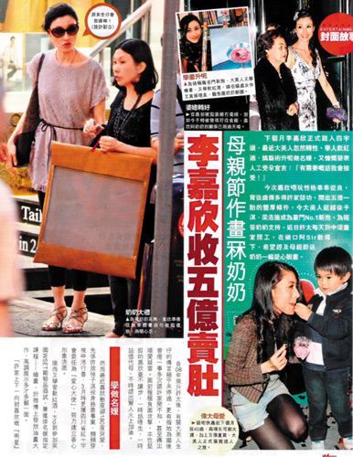 據(jù)香港媒體報道,自2008年榮升“許太”后,有關大美人李嘉欣生仔的傳言幾乎未停過。下個月李嘉欣將正式踏入四字頭,據(jù)傳許家開出“5億(港元)一胎”的天價獎賞,只要李嘉欣同意接受人工受孕,無論成敗一概有錢收。