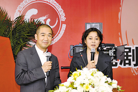 昨天的成立大會更像是一場眾導演的聚會,不少人都身穿便服到場,而主持人倪萍和張國立更是大搞冷幽默。倪萍先把“矛頭”對準央視:“中央臺影視部的汪國輝主任,你們最招人恨了。到底什么樣的戲能上你們央視呀?今天倒是講講清楚!”接著她話鋒一轉(zhuǎn),又把責任推給張國立:“這事跟我沒關系,是張國立教我說的!北弧跋莺Α钡膹垏⒅缓酶尚陕。會場氣氛分外輕松。