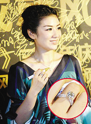 黃奕于近日出席某時(shí)尚活動(dòng)時(shí),被媒體發(fā)現(xiàn)右手戴著大顆鉆戒,隨后便有媒體猜測(cè)稱(chēng),黃奕已經(jīng)訂婚。對(duì)此傳聞,經(jīng)紀(jì)人林小姐不置可否,她說(shuō):“我知道的和你們都一樣,我也是在網(wǎng)上看到這個(gè)新聞的,因?yàn)槲沂墙?jīng)紀(jì)人,所以不了解藝人私生活上的事情! 小 魚(yú)