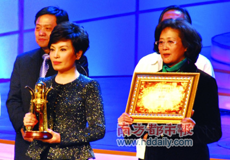前晚,2009中國播音主持“金話筒獎”頒獎盛典在北京電視臺大劇院隆重舉行。來自全國各地的百余名播音員、主持人歡聚一堂,共同慶!敖鹪捦勃劇钡挠忠淮尉柿料。在此次評選中,中央電視臺張泉靈、楊銳、董浩等10人獲得電視播音員主持人獎;中央電視臺李修平、張宏民主持的《新聞聯(lián)播》、四川廣播電視集團寧遠主持的《汶川地震特別報道》等10件作品獲得電視播音主持作品獎;中央人民廣播電臺郭靜、梁悅主持的2008年5月12日《汶川緊急救援》(開篇)、寧波人民廣播電臺何謹主持的《一位絕癥母親的奧運夢想》等10件作品獲得廣播播音主持作品獎。此外,已故中央電視臺著名播音員羅京被授予了“金話筒獎”終身成就榮譽,他的同班同學兼同事李瑞英替羅京領取了這項殊榮。