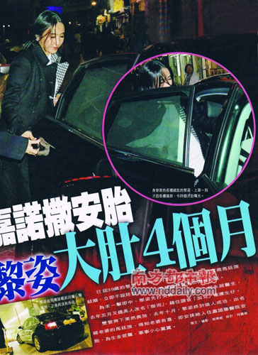 為生仔改名“黎珈而”的黎姿自成功“加兒”后,一直安心養(yǎng)胎甚少露面。昨日新上市的《壹周刊》又爆新料,雖然大部分時間都留家安胎,不過一向幫忙打理弟弟黎嬰美容診所生意的黎姿上月底也現(xiàn)身視察公司事務(wù),全程都由司機接載。一身黑色長外套裹住的黎姿,在上車一刻因外套揚起露出白色打底衫,四個月的“大肚照”終掩不住,曝光了!而一向?qū)枳颂蹛塾屑拥鸟R廷強,聽說自老婆懷孕后也變成緊張大師,減少出外應(yīng)酬抽更多時間陪黎姿在家安胎。