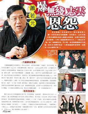 多年來,蕭若元一直不滿無線的壟斷行為。對于陳志云涉貪事件,他有感而發(fā):“我認識他多年,但和他不熟。我很欣賞他的聰明,EQ又高,可惜他聰明有余,智慧不足。”陳志云EQ高眾人皆知,去年蕭若元召集了20多人在書展上攻擊他,無論別人怎么高喊口號,陳志云仍能鎮(zhèn)定微笑。但蕭若元指出:“陳志云太過濫權、偏心,作為一個大機構的高層,他不應該過分高調,也不該和下屬太過親密,那樣會很麻煩。蕭定一就是一個例子,他當年和李彩樺拍拖,就被人指偏心!