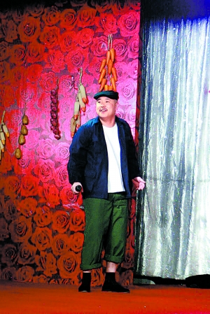 晚上10時許,在一共6個節(jié)目持續(xù)了近3個小時的現(xiàn)代二人轉(zhuǎn)表演后,趙明遠上臺了。這位29歲的演員要模仿41歲的王小利扮演的劉能。
