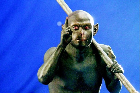 已經(jīng)進(jìn)入最后拍攝階段的張紀(jì)中版新《西游記》日前又曝光一組孫悟空的全新造型,傳說(shuō)中的“裸戲”也揭開(kāi)神秘面紗。據(jù)記者了解,此次曝光的劇照,專為孫悟空被太上老君煉丹爐煉燒的戲份設(shè)計(jì)。從劇照中看,由于猴毛在煉丹爐里完全被燒光,這個(gè)造型中,吳樾脫掉“猴毛衣”,取而代之的是包括眼睛、嘴唇在內(nèi)身上每一寸皮膚都涂滿烏金色的金粉,整個(gè)人都如少林寺18銅人一般,整體看起來(lái)就是一個(gè)具有中國(guó)特色的“阿凡達(dá)”。