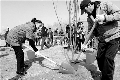 除了稱贊張國立和黃曉明熱心公益,馮小剛對(duì)徐帆和鄧婕也不吝贊美。他說:“徐帆、鄧婕都深明大義。雖然每次看到冷嘲熱諷的話也生氣,但是回家聽我們一說,還是非常支持我們!卑l(fā)布會(huì)結(jié)束后,馮小剛、張國立等嘉賓來到奧林匹克公園參加“與大樹在一起”植樹活動(dòng)。 記者侯艷