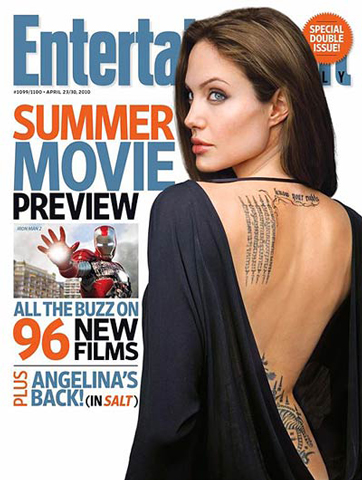 安吉麗娜-朱莉登上了最新一期的《娛樂(lè)周刊》雜志,封面上的她大秀美背,后背上的精致文身更添性感。34歲的朱莉接受了該雜志的采訪(fǎng):