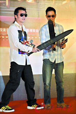 當(dāng)日,謝霆鋒第二次成為爸爸,他承認(rèn)自己現(xiàn)在心情大好,拍喜劇片正適合。二人在現(xiàn)場(chǎng)也擺開(kāi)架勢(shì)比賽拔劍速度,兩人戲中有不少對(duì)打戲份,而家輝透露戲里,謝霆鋒武功高強(qiáng),“他的責(zé)任就在打,我的責(zé)任在搞”。張家輝更笑指謝霆鋒:“他生孩子很有本事!