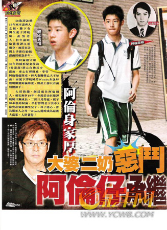 雖然現(xiàn)階段阿倫極力避免讓兒子曝光,但據(jù)知他眼見(jiàn)愛(ài)子外形討好,又遺傳了自己的歌唱天分,現(xiàn)已有七級(jí)鋼琴的造詣,故有意帶兒子入行。據(jù)唱片公司職員爆料:“阿倫整天在高層面前提起自己的兒子,說(shuō)他長(zhǎng)得帥唱歌又好!逼鋵(shí),除了為兒子鋪好路,身家豐厚的阿倫也在積極為愛(ài)子的生活作打算。雖然阿倫大部分財(cái)產(chǎn)都由發(fā)妻莎莉掌管,但真正歸莎莉所有的物業(yè)只有約值3000萬(wàn)元,而保守估計(jì)阿倫坐擁逾5億資產(chǎn)。為防他日“兩房”爭(zhēng)寵,同時(shí)也為兒子的將來(lái)著想,據(jù)知阿倫早就打算將資產(chǎn)轉(zhuǎn)到兒子名下!岸獭盬endy雖然現(xiàn)在僅有兩個(gè)房子在手,但作為5億家產(chǎn)繼承人之母,下半世當(dāng)然不用愁!(阿文)