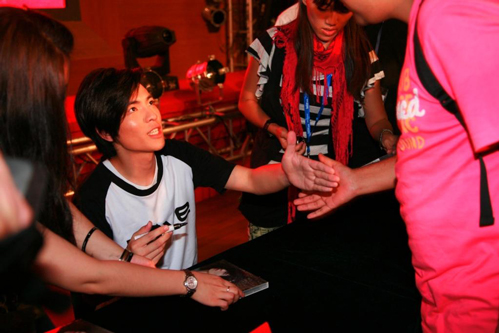 在最后的簽售環(huán)節(jié),等待已久的歌迷迫不及待地想要簽名,現(xiàn)場秩序也一度混亂。經(jīng)過工作人員的協(xié)調(diào)后,大家才井然有序地排隊簽售。