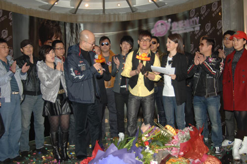 作為黃勇這張全新專(zhuān)輯的監(jiān)制,同時(shí)也是黃勇老板兼大哥的齊秦因?yàn)榕R時(shí)有事沒(méi)能來(lái)到發(fā)布會(huì)現(xiàn)場(chǎng),但通過(guò)VCR送上了他特別的祝福。齊秦對(duì)黃勇音樂(lè)給予了極大的肯定和祝福。黃勇的好友龐龍、尹相杰、熊天平等也通過(guò)VCR送上了祝福。北京圣天驕影視文化藝術(shù)有限公司老總李繼宏也送上了一份精心準(zhǔn)備的寓意深刻的禮物——金話筒,希望黃勇把他的歌聲通過(guò)這只金話筒帶給全世界所有喜歡他音樂(lè)的朋友。(李學(xué)仕)