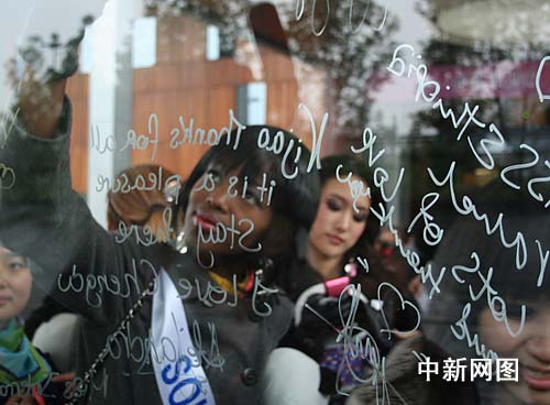 中新網(wǎng)成都11月19日電 (李鵬程) 19日下午,隨著三輛滿載各國(guó)選美小姐的大巴駛?cè)氪ㄍ秶?guó)際酒店的大門,參加第49屆國(guó)際小姐世界大會(huì)總決賽的全部參賽選手已抵達(dá)成都。雖然天氣仍舊寒冷,但是佳麗們的精神面貌都極佳,對(duì)于第一次來到成都,她們顯得很興奮。主辦方隨后進(jìn)行簡(jiǎn)短而隆重的歡迎儀式,由迎賓志愿者向各國(guó)小姐贈(zèng)送了代表成都本地特色的熊貓玩偶。