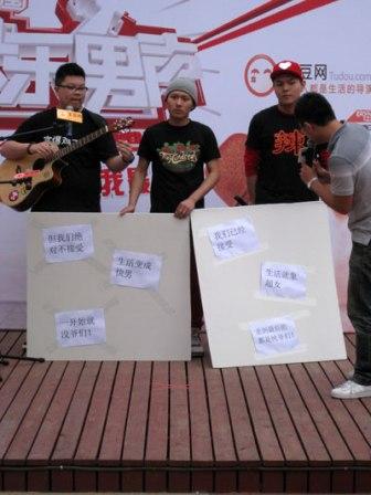 今年快男注定與眾不同,不僅“偽娘”選手備受關注,而且連“反偽娘”選手也不失風采,上周快男土豆網分賽區(qū)一組特殊選手C-BLOCK組合因在比賽現(xiàn)場打出 “保護純爺們 消滅偽娘族”的參賽口號,而備受網友關注并被封為“反偽娘斗士”,而有關這場“偽娘”與“反偽娘”的對決,昨日舞美師在博客爆出猛料:“著姐入圍前三甲不是問題,首先是因為吸引眼球的需要,這也是湖南衛(wèi)視選秀常用手段;不僅如此,劉著也已經秘密簽約湖南衛(wèi)視旗下長沙天娛公司”。而針對舞美師的爆料內容,記者也從網上了解到該組合相關資料,首先該C-BLOCK組合來自長沙,在當?shù)匾恢毙∮忻麣,實力不俗,去年多次參加湖南衛(wèi)視王牌節(jié)目《快樂大本營》、《成年禮》、《8090》等節(jié)目,而關于“偽娘”劉著網上開始有人爆出其與湖南衛(wèi)視關系甚密,這些相關信息與舞美師爆料內容十分契合。為進一步求證舞美師的爆料內容,記者向湖南衛(wèi)視快男導演組一編導求證,他表示:“不要相信舞美師博客內容,純屬造謠,快男比賽保證公平選拔”! 漪