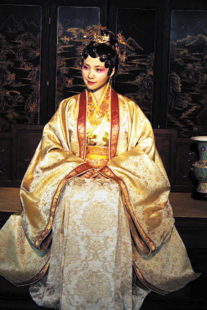 小說中的平兒:原著沒有直接描寫,只按當時的一般丫環(huán),外穿青藍色的背心,內(nèi)穿紅色的襖子,下面穿裙子,腰圍汗巾。