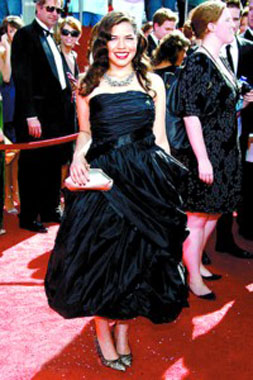 電影大明星、監(jiān)制迷你劇集《約翰·亞當(dāng)斯》獲提名的湯姆·漢克斯也同夫人一同現(xiàn)身紅毯,憑借《伯納德與桃瑞絲》獲提名的蘇珊·薩蘭登也讓紅毯“星味”大增。去年斬獲艾美獎(jiǎng)喜劇類最佳女主角的“丑女”亞美莉卡·弗雷拉一直深受觀眾喜愛,但今年的她胖了很多,一身并不合體的黑裙讓人實(shí)在不敢恭維,相比《丑女貝蒂》中的配角維妮莎·威廉姆斯一身山水畫風(fēng)情的長裙黯然失色,只不過“貝蒂”更具喜劇效果。