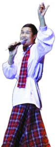 雖說(shuō)是趙家班的巡演,但連舞臺(tái)上都掛著“小沈陽(yáng)笑轉(zhuǎn)2009”的橫幅,場(chǎng)子里90%以上的觀(guān)眾更是沖著這位當(dāng)紅諧星而來(lái),難怪演出開(kāi)始的一個(gè)半小時(shí)之后,當(dāng)小沈陽(yáng)穿著經(jīng)典的蘇格蘭裙裝蹦著走到舞臺(tái)中央時(shí),現(xiàn)場(chǎng)立即爆發(fā)出雷鳴般的掌聲,熱情的女觀(guān)眾也開(kāi)始接力般一個(gè)個(gè)地往舞臺(tái)上送玫瑰花。