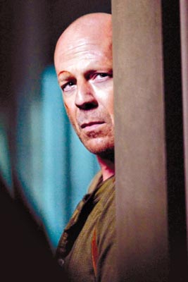 今日,《虎膽龍威4.0》與廣州觀眾見面。這部影片不僅要面臨《色,戒》的余威,還要與另一部好萊塢大片《諜影重重3》打擂臺,但是發(fā)行方仍然看好影片的票房,因為該片的前三集已積累了大量的鐵桿粉絲,因為該片的主演是大名鼎鼎的布魯斯·威利斯。今年52歲的布魯斯·威利斯尚能打否?看過影片的記者贊揚:寶刀未老,十分火爆。布魯斯·威利斯則自夸:“我還是25歲的小青年!”