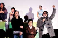 一位星爺?shù)哪蟹劢z公開“指責”星爺從演員到導演的轉(zhuǎn)型并不是很成功,“我為您設(shè)計了一個更有創(chuàng)意的方案,希望您能看一下。”星爺連忙讓工作人員把方案遞到臺上,看完驚呼,“原來是劇本,為什么不早點給我?”而更令星爺意外的是接下來一個男觀眾要當場向女友求婚,并請星爺當證婚人。星爺估計也被這陣勢嚇了一跳,一時間不知作何回答。不過隨后星爺還是按照程序履行了自己的義務(wù),還現(xiàn)場解下圍巾當作禮物,張雨綺也摘下項鏈送給這對大膽的情侶。徐嬌自稱很窮沒禮物可送,但即興表演了一段倫巴,有模有樣的舞姿不僅引得干爹星爺開心大笑,還博得了所有觀眾的掌聲。一場影迷見面會基本成為一個求婚儀式,星爺也從絕對的主角暫時淪為配角。至于那位“女朋友”,她在臺上幸福得滿眼淚花,說不出話來,在星夜和觀眾的“起哄”聲中,接受了男朋友送的玫瑰。(記者 馮遐)