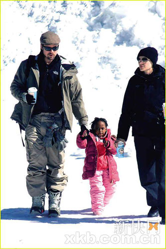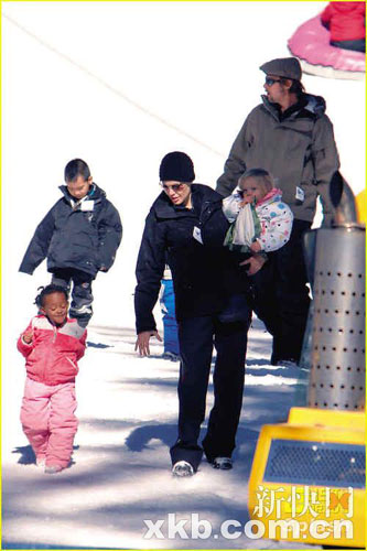組圖:皮特朱莉滑雪地度周末 一家大小其樂(lè)融融