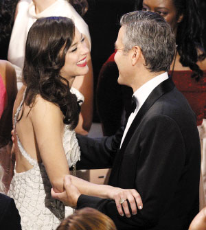 喬治·克魯尼真是越老越頑皮,雖然在強敵劉易斯的壓制之下無緣影帝,但紅地毯上的他不僅與女友莎拉·拉爾森大秀恩愛,臺下又熱情地與凱特·布蘭切特寒暄,向新鮮出爐的最佳男配角賈維爾、最佳女配角蒂爾達(dá)、最佳女主角瑪麗昂、最佳男主角劉易斯等人表示祝賀,莫非他真是見誰都熟,人見人愛車見車載?
