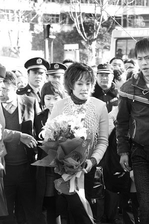 至10時(shí)15分慶典儀式完畢,人群仍然不肯散去。“反正都遲到了,打電話請個(gè)假吧!再等等,她還會出來!