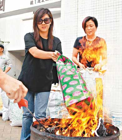 據(jù)臺灣媒體報道,鄭欣宜昨天下午在家門口旁焚燒仿LV和Gucci花色的手提袋和行李箱等紙扎祭品,更有肥肥生前最愛吃的鮑魚與山珍海味,好友燒給肥肥的東西數(shù)量接近100份,其中還包括美金紙錢,當(dāng)作她身后消遣娛樂的麻將賭資,可見她生前人緣超好。