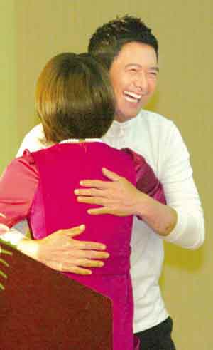 而女記者之后,有位男記者問到周潤發(fā)對男主角和自己的愛如何理解時(shí),故意誤解了問題的他稱:“我對男主角的愛?對!是有愛,是友情的愛!”接著他又說:“就像我對你,我也挺愛你的!边@番話又一次引來爆笑。