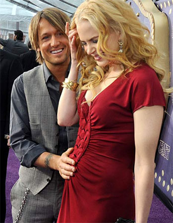 前天妮可·基德曼與凱斯·厄本連袂走上鄉(xiāng)村音樂電視獎頒獎典禮紅地毯,兩人手牽著手顯得很親熱,凱斯·厄本還不時摸摸妮可·基德曼隆起的腹部,臉上洋溢準爸爸的喜悅。