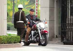 日前某天下午記者看見葛優(yōu)騎著一輛嶄新的國產(chǎn)某品牌大型摩托車駛出別墅大門,他穿著休閑夾克,戴著一頂棒球帽,端坐車上,滿臉含笑,經(jīng)過大門時還主動朝保安點(diǎn)頭,看上去心情超爽,一出別墅大門,葛優(yōu)便加大油門,繞著別墅疾馳起來,他姿態(tài)瀟灑,動作嫻熟,仿佛是一位正在前去參加“方程式”比賽的摩托騎手。幾分鐘后,葛優(yōu)結(jié)束了這次短暫的兜風(fēng),帶著煥發(fā)出的一種少有的活力返回別墅。卓 偉