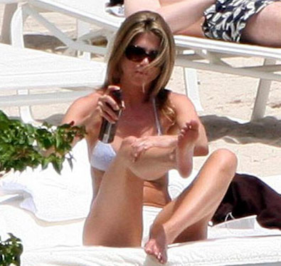 組圖:安妮斯頓孤身海灘曬日光浴 百無聊賴