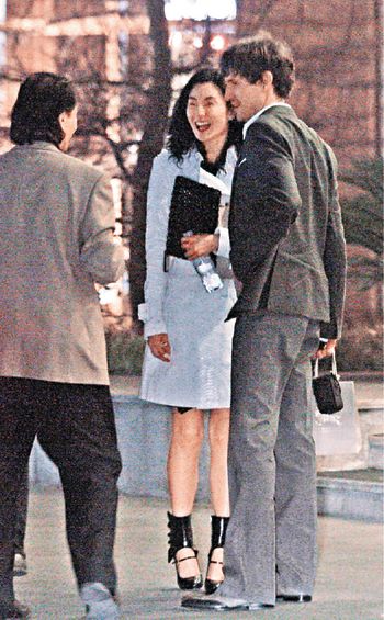 日前張曼玉與男友Ole Scheeren,出席完英倫品牌Burberry藝術(shù)總監(jiān)Christopher Bailey的私人晚宴后,雙雙返回“ASCOTT beijing”休息,只見她下車后沒有馬上沖入酒店,反而停在路邊等著男友,最后二人十指緊扣步入大堂,全程小鳥依人般依偎著男友,上樓半小時后,換上一身便服的張曼玉與男友現(xiàn)身大堂并前往位于地庫的“皇家”按摩中心按摩。