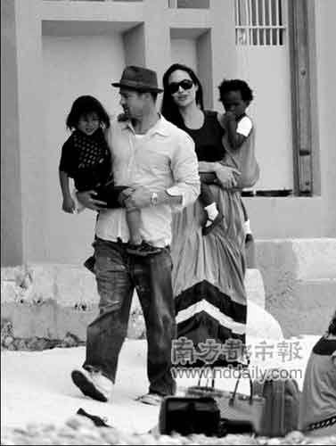 上周日,皮特和朱莉帶著來自越南和非洲的養(yǎng)子養(yǎng)女來到法國(guó)南部的海灘度假,一家人猶如小小聯(lián)合國(guó),充分體現(xiàn)兩人愛心。