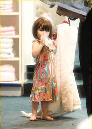 本周一,湯姆·克魯斯的太太凱蒂·赫爾姆斯,帶著他們的寶貝蘇瑞在紐約一間兒童用品店購物,小小年紀的蘇瑞已經(jīng)很有想法,一看到自己喜歡的毯子就抓著不放,睜大了眼睛示意媽媽買那個,與此同時她另一只手還抓著奶瓶,超級可愛。