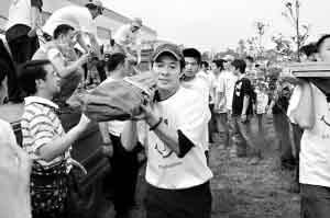 “世界華人都是一家人,我早就想來災(zāi)區(qū)了,今天都來晚了,但我會(huì)盡力去支援救助災(zāi)區(qū)群眾的。”前天下午2時(shí),中國紅十字會(huì)總會(huì)和李連杰帶著災(zāi)區(qū)群眾最需要的食品、藥品、帳篷等來到地震重災(zāi)區(qū)什邡鎣華鎮(zhèn),將物資及時(shí)送到了當(dāng)?shù)卣种。?dāng)日的物資一共重達(dá)50噸,整整裝載了7大卡車。李連杰表示,哪里最需要物資,壹基金將會(huì)把物資送到哪里。