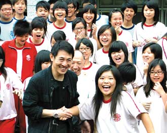 李連杰(左)昨天下午到南投縣集集國中,與學(xué)生們相見歡。