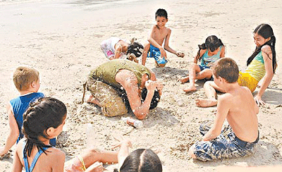 中新網(wǎng)6月10日電 劉德華(華仔)日前在泰國芭達(dá)雅海灘拍烏龍茶廣告時(shí),被一群小孩團(tuán)團(tuán)圍住,小朋友們不但朝他噴水、丟沙球,還爬到他身上玩自由搏擊,華仔笑說自己彷佛年輕10歲,玩得不亦樂乎,儼然一個(gè)大“孩子王”。