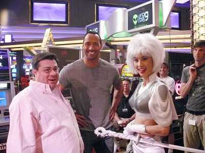 導演安迪·菲克曼、男主角巨石·強森和“外星公主”黃圣依