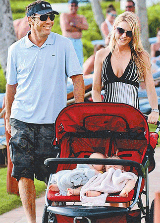 中新網(wǎng)6月18日電 據(jù)臺灣媒體報道,“美國甜心”梅格·瑞恩的前夫丹尼斯·奎德(Dennis Quaid)與現(xiàn)任妻子委托代理孕母生下龍鳳胎寶寶,但寶寶出生沒幾天便因醫(yī)院誤打超出標準劑量一千倍的血液稀釋劑,差點枉送小命。如今兩個寶貝已7個月大,健康活潑,54歲的奎德日前推他們出門“游街”,開心滿足全在臉上。