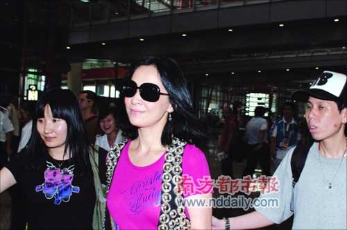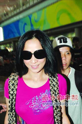 剛剛大婚完畢的劉嘉玲現(xiàn)身北京機(jī)場(chǎng)。昨日下午5點(diǎn)左右,劉嘉玲與其經(jīng)紀(jì)人從香港飛抵北京,從機(jī)場(chǎng)走出的劉嘉玲著裝格外活潑,粉色短T恤加黑色微叭修身褲、白色球鞋。