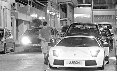 日前,因為與熊黛林的戀情出現(xiàn)困境,郭富城獨自駕白色跑車,到香港跑馬地與一名男性好友一起吃火鍋。由于郭富城的白色跑車配以其英文名“Aaron”車牌,吸引大批路人向跑車行注目禮。