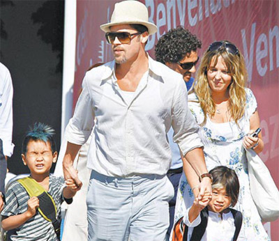 中新網(wǎng)8月28日電 布拉德·皮特昨日帶2名養(yǎng)子梅鐸斯和帕克斯到水城,外傳他將偕同女友安吉莉娜·茱莉(Angelina Jolie)出席威尼斯影展,但茱莉留在南法豪宅照顧新生兒與2個女兒,影迷想看她產(chǎn)后復(fù)出,可得再等。