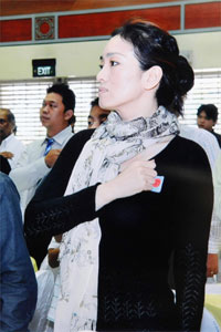 鞏俐早前成功申請(qǐng)公民權(quán),原定參加8月23日出席在高等法院舉行的公民宣誓儀式,但最后卻“玩失蹤”,所以一直沒領(lǐng)身份證。前日,鞏俐終于在德義民眾俱樂部,補(bǔ)領(lǐng)身份證、補(bǔ)拿居民證書、補(bǔ)念誓約,終于宣誓成為新加坡人。