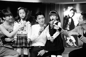 由于劇中謝霆鋒和張家輝都和孩子有對手戲,首映式現(xiàn)場,主辦方特意請來了兩個(gè)小女孩和兩位男星進(jìn)行互動(dòng)。