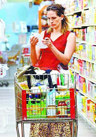 茱莉亞羅勃茲私下總是素顏、頭發(fā)蓬亂地逛大賣場。