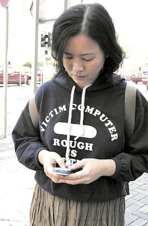 面容憔悴的藍(lán)潔瑛不斷把玩手機(jī)。圖片均來(lái)自香港《明報(bào)》