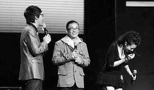 賀歲大片《非誠(chéng)勿擾》前晚在杭州舉行首映禮,導(dǎo)演馮小剛大展群眾基礎(chǔ),除了片中三位主角葛優(yōu)、舒淇、徐若瑄出席之外,其他“有關(guān)無(wú)關(guān)”的明星也有一大堆到場(chǎng),堪稱華誼藝人的一次集結(jié)。王寶強(qiáng)、胡可、馮遠(yuǎn)征、張涵予、尚雯婕、羽泉、楊坤等均到場(chǎng)獻(xiàn)藝。難怪前天馮小剛欣慰地說(shuō):“我從來(lái)不擔(dān)心觀眾,觀眾一直在跟我走!