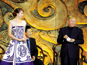 林志玲用古代女子的姿勢倒了一杯茶,走到吳宇森面前,身子微微一傾,纖聲細語道:“導演,您請!”吳宇森剛把茶接到手,主持人的聲音就響起了:“導演,這杯茶您得干了!”全場哄堂大笑,吳宇森只好再次喝完。
